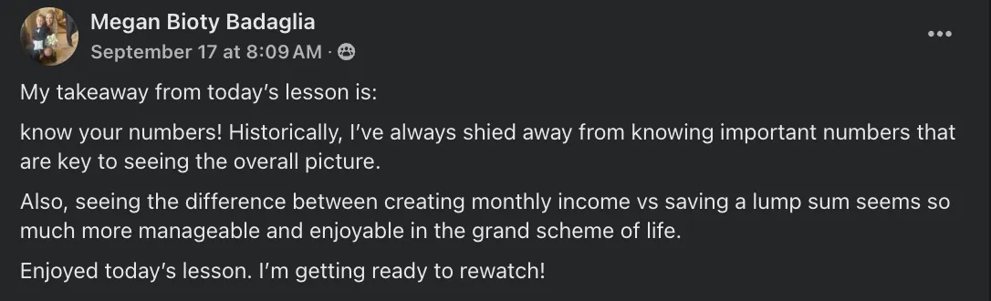 You have a clear roadmap to time freedom, not just financial freedom